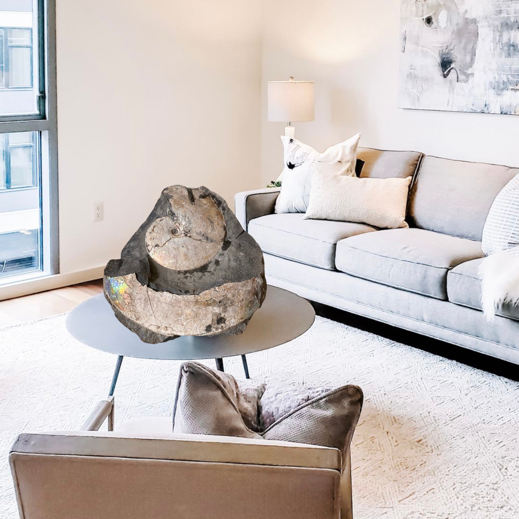 Stunning Opalescent Ammonite Fossil. Excavated by hand from the side of a cliff in the remote badlands of Alberta, Canada. This beautiful 70 million year old, is museum quality. This Fossil is from the Era of Dinosaurs.